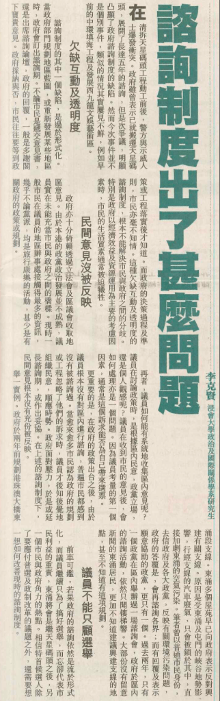 原文:李克賢,「諮詢制度出了甚麼問題」,《蘋果日報》, 2006年12月22日